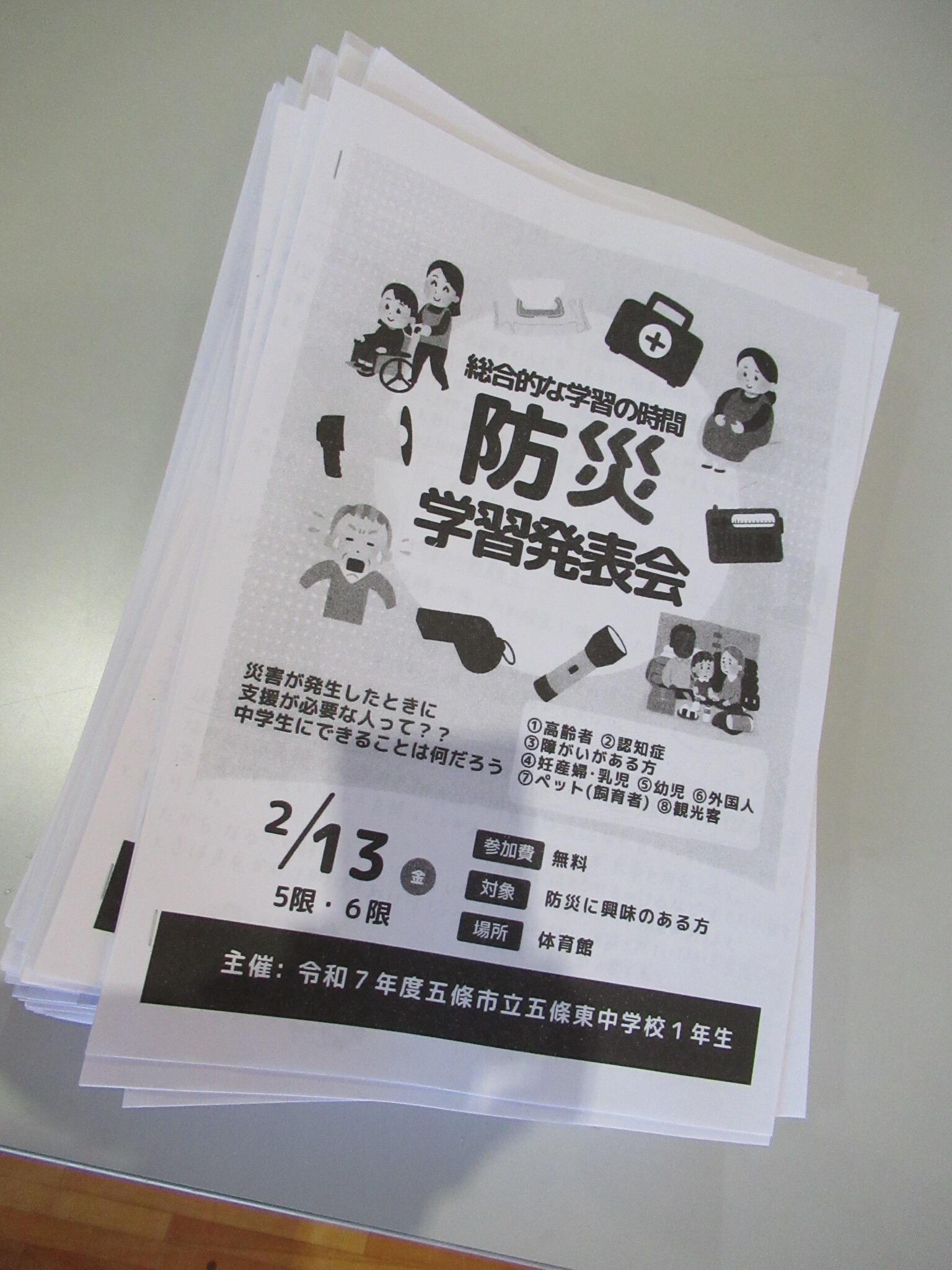 本年度の学年テーマは「防災✕福祉」です。この視点でふるさと五條を教材として学習を進めてきました。1学期から計10回に及ぶGTの講演や体験を通してたくさんの学びのヒントを得ました。その学びを、発表に向けスライドやパンフレットにまとめ、原稿を作るなどさまざまな準備を重ねてきの発表となります。