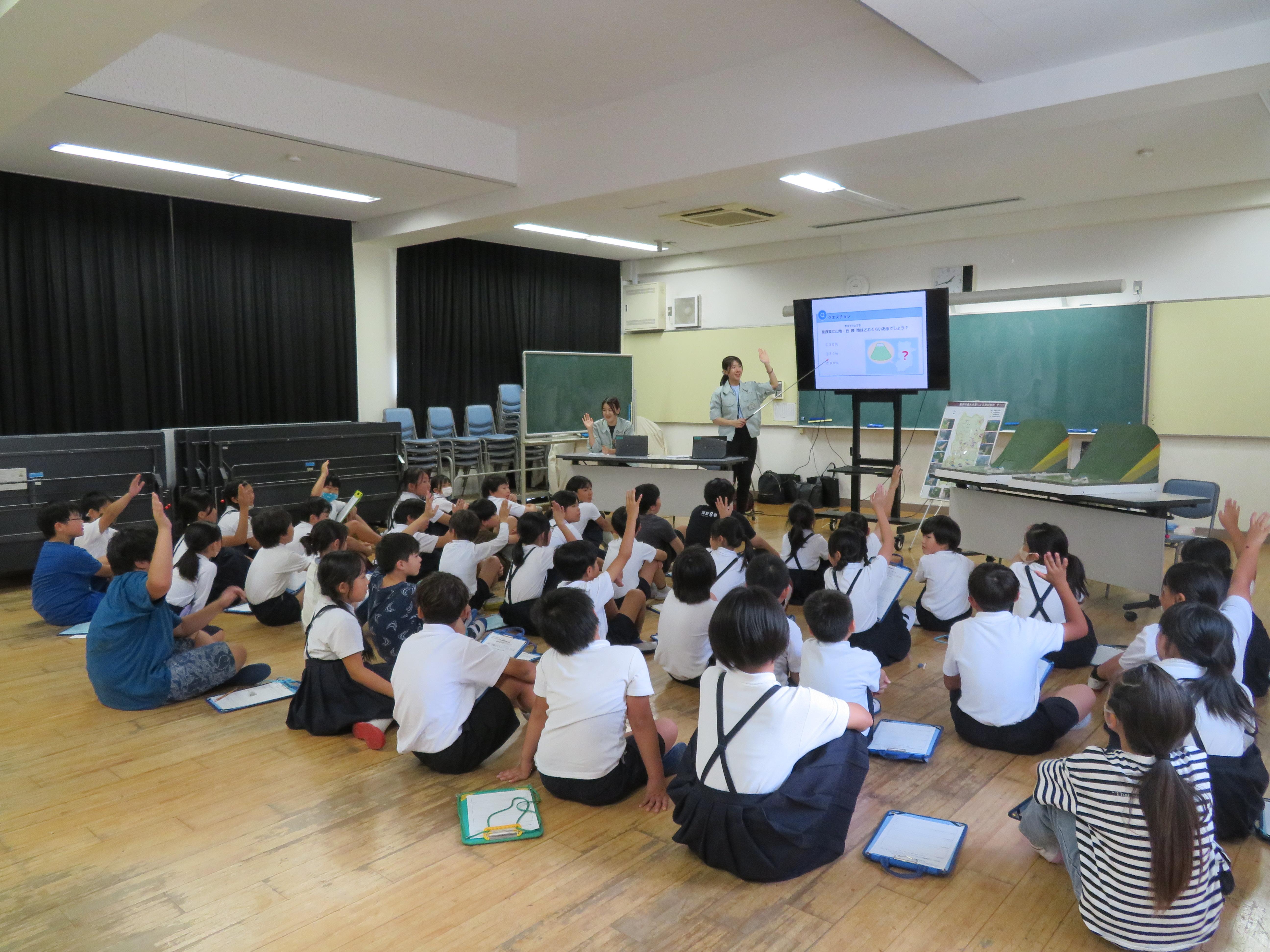 今日は、奈良県 砂防・災害対策課のみなさんと砂防ボランティアのみなさんに来校していただき、