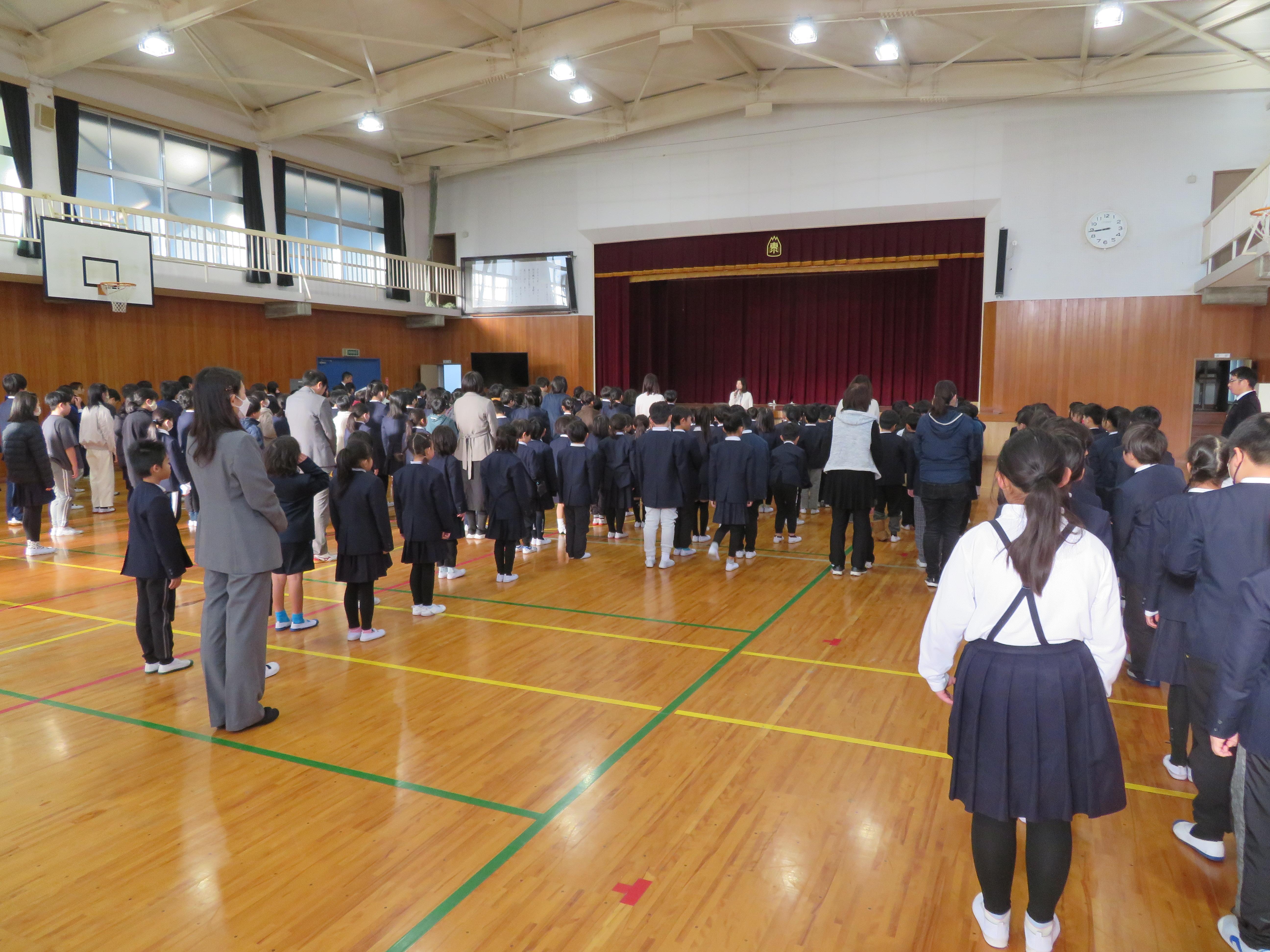 校長先生のお話を聞く子どもたちの後ろ姿は、学期の初めよりもどこか凛々しく、一回り大きく成長したように感じられます。