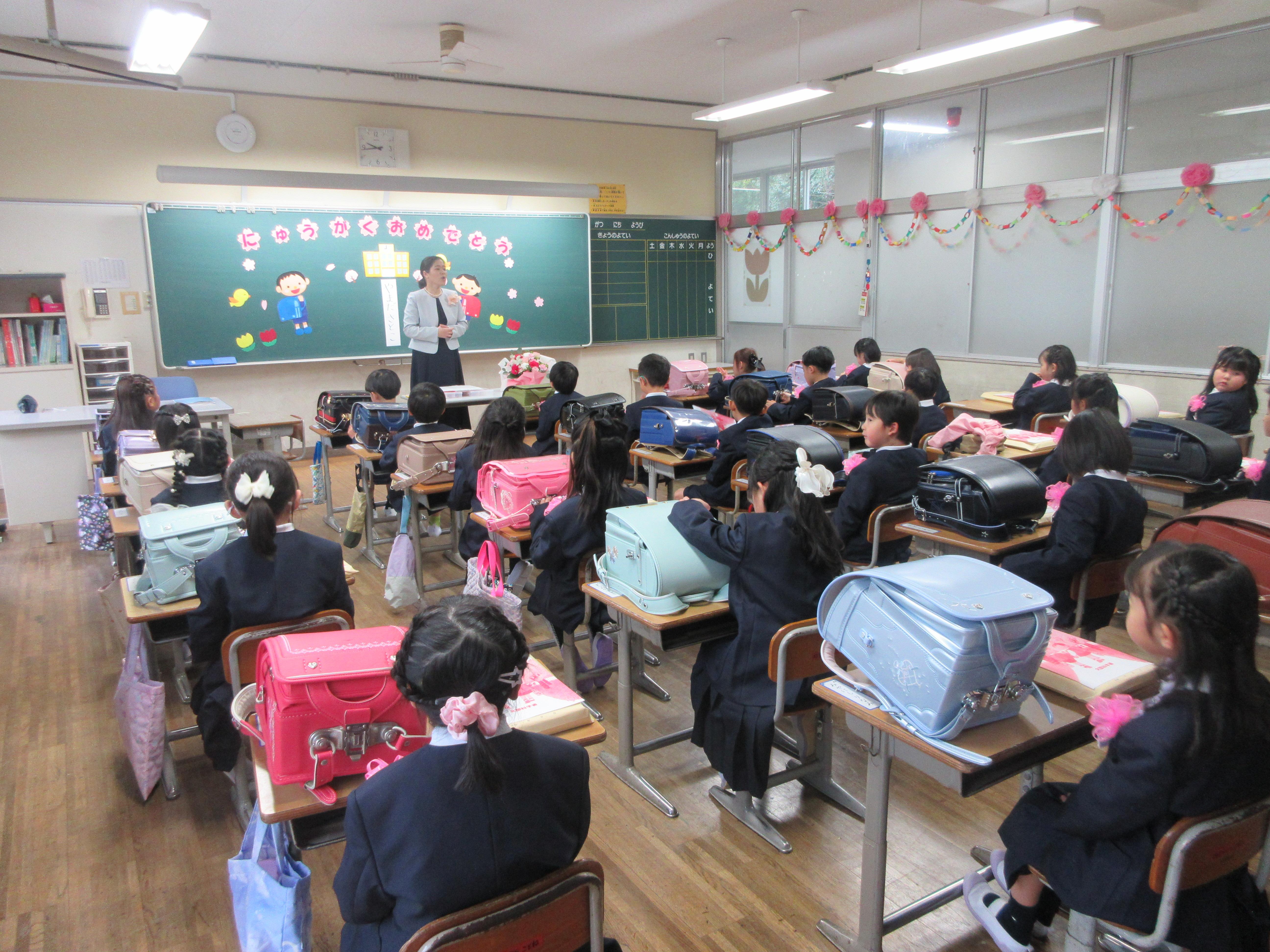 あいにくの大雨となりましたが、校舎の中は新入生29名の明るい笑顔で、パッと花が咲いたような華やかさに包まれました。色とりどりの傘を差し、大きなランドセルを背負って登校した子どもたち。式本番では、緊張しながらも名前を呼ばれると「はい!」と元気いっぱいの返事を聞かせてくれました。雨音を吹き飛ばすような立派な姿に、教職員一同、とても頼もしく感じました。