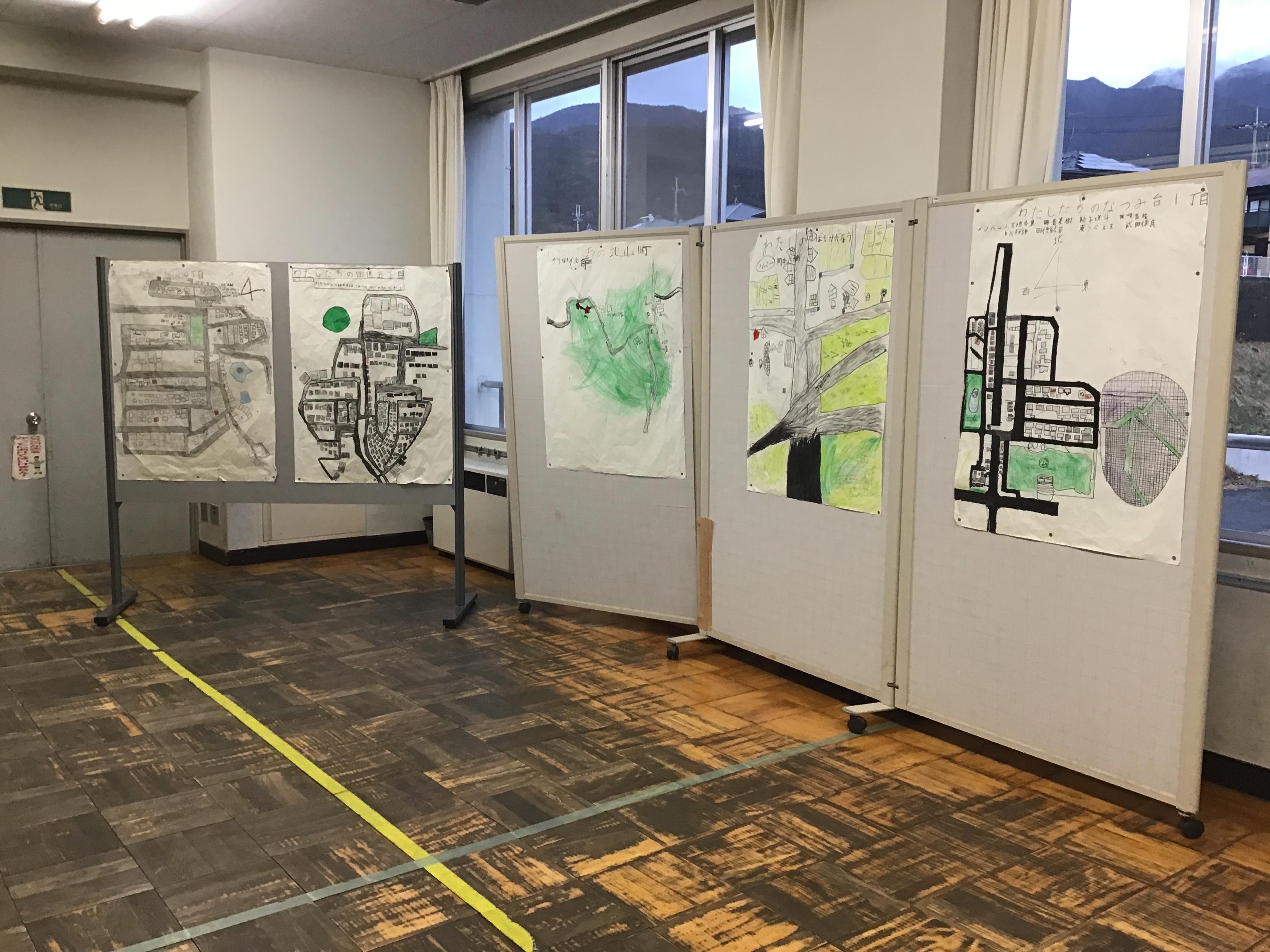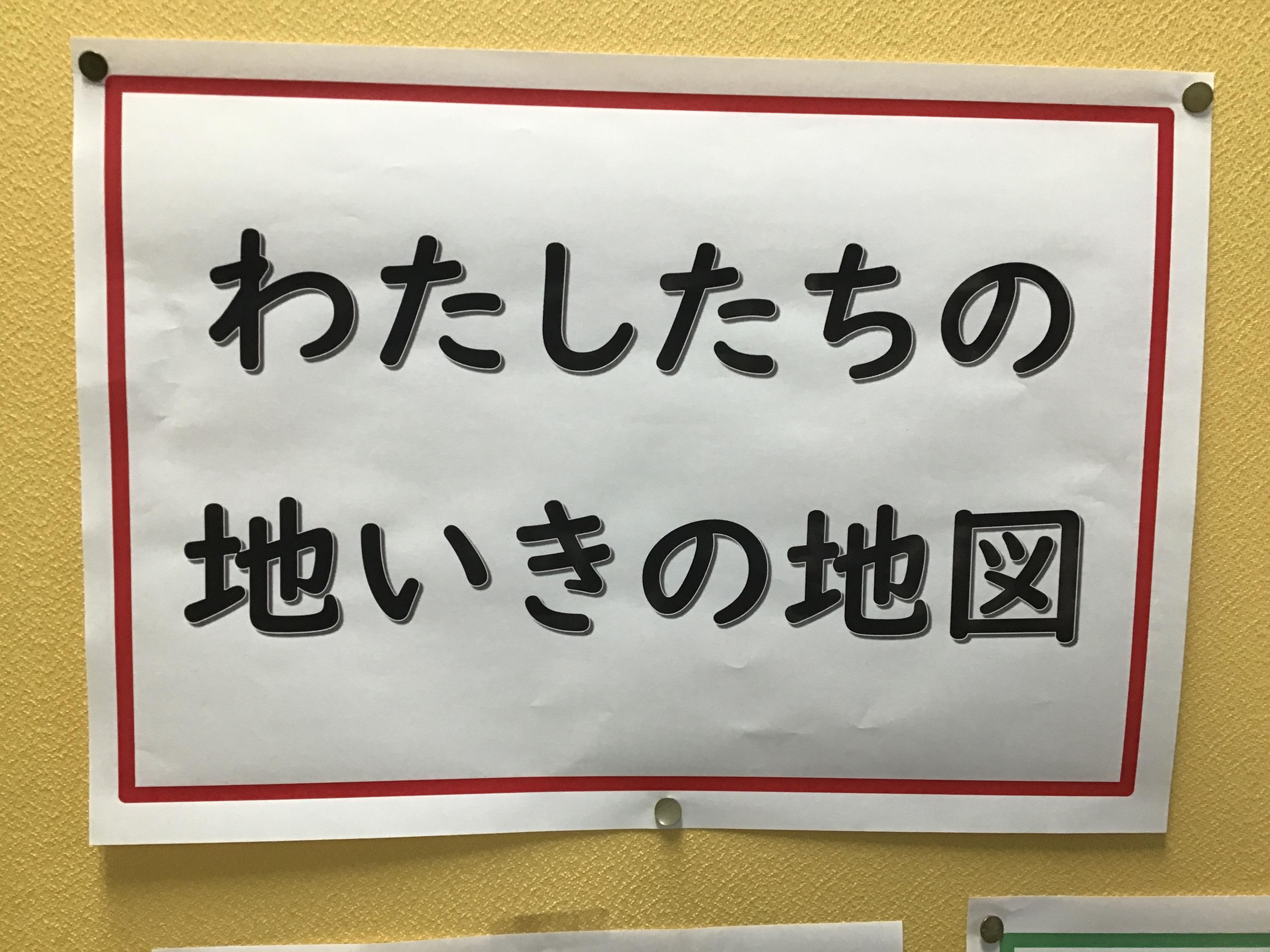 ①つ目は、わくわくタイムで書いた、「私たちの地域の地図」です。子どもたちが住む地域ごとにグループになり、協力をして書き上げました。