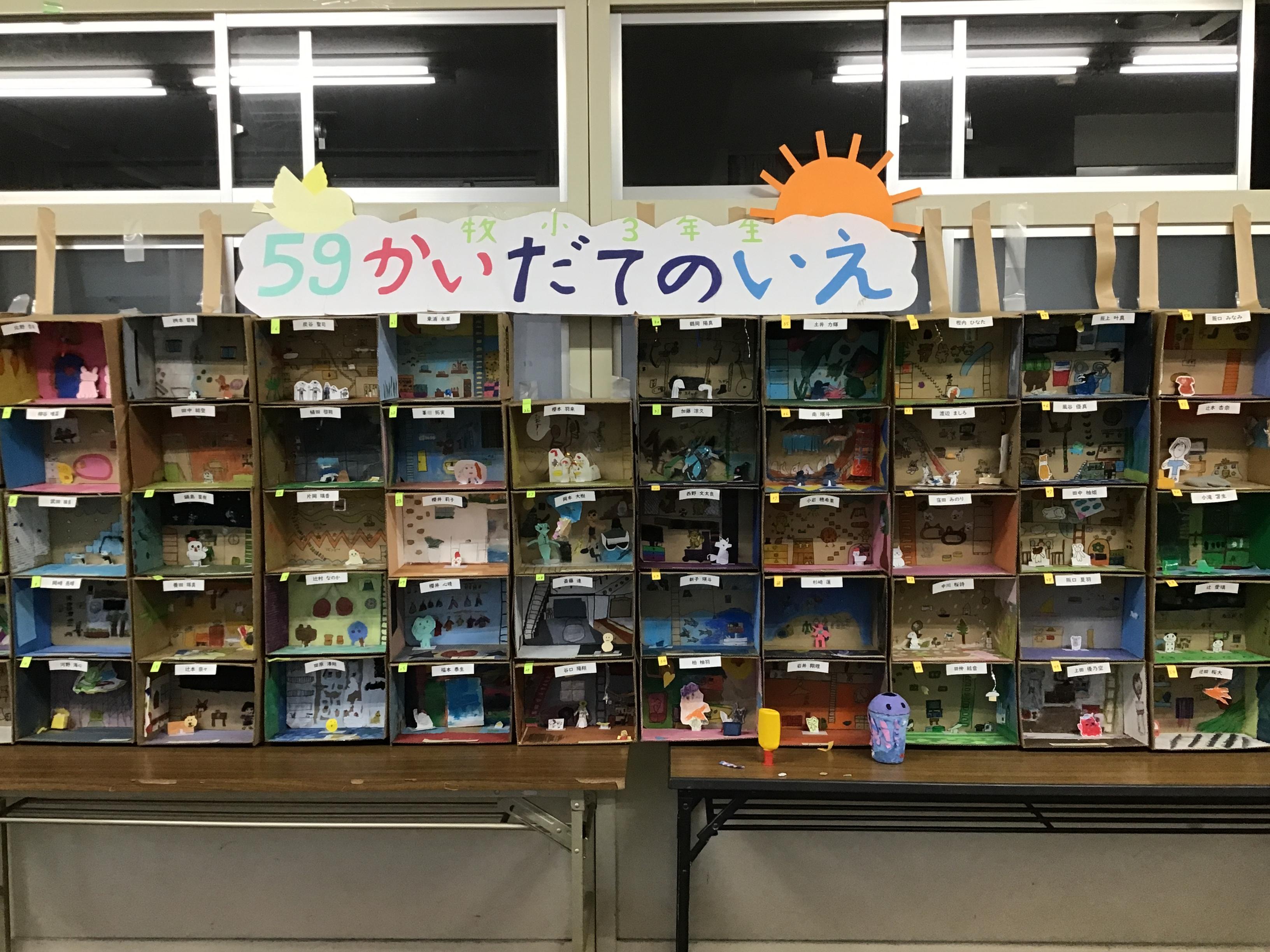 3年生では、個人面談で保護者みなさんにも見てもらえるように、図工とわくわくタイム(総合的な学習の時間)の作品展をしました。